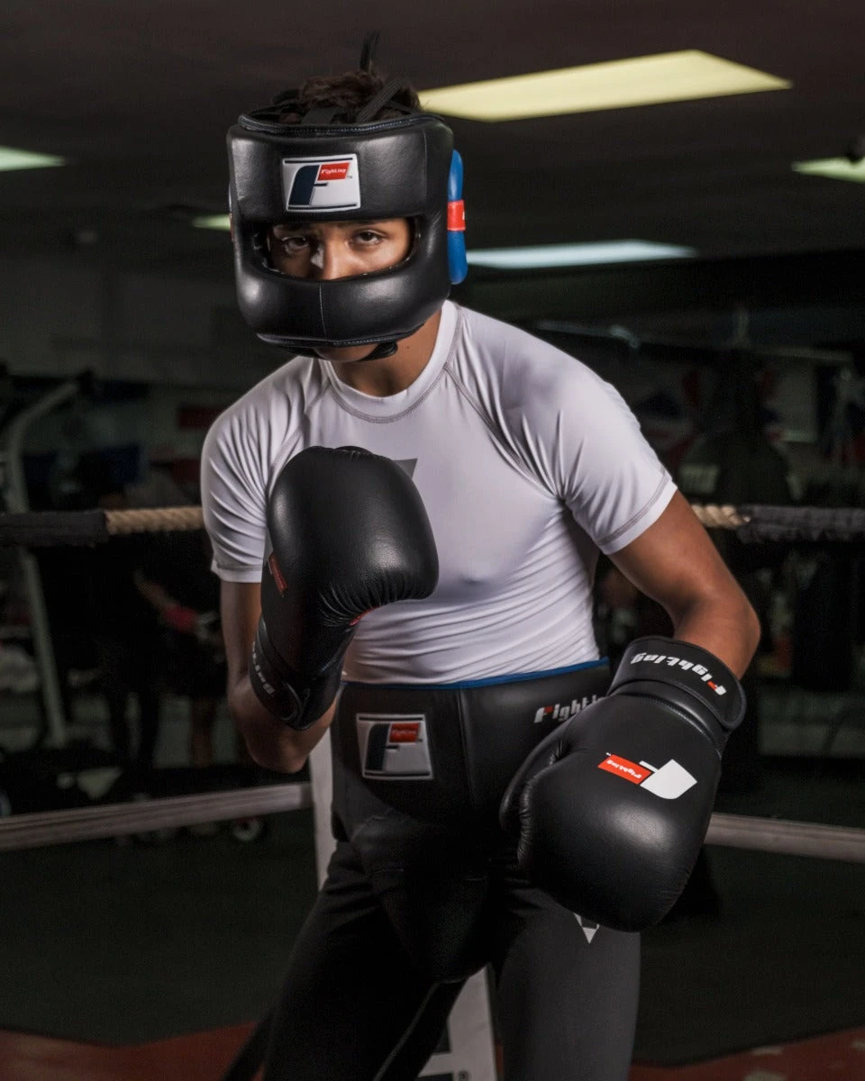 All new and invigorated, the pride and passion of Japan for decades is now exclusively available in Fighting! Genuine 100% milled grain leather cover delivers the ultimate durability and longevity. Fighting’s exclusive F85R1 EVA high end, softer foam padding offers intense coverage and custom form fit befitting champions around the world. Crafted and manufactured with a fully molded PVC plastic face bar, surrounded with sponge foams, offer a more comfortable, no penetration barrier. Ideal for athletes that want to spar without the face contact. Offers an exceptional contoured fit, impact resistance, superior coverage and with less bulk. Complete with padded ear coverage, leather chin strap with steel buckle and added hook-and-loop security, padded back side, and professional lace-tie security on top and rear side for a custom fit. Includes accented screened leather inside liner that is easy to wipe clean after use. The extra light weight, reduced bulk and no contact features are ideal for training without face contact.