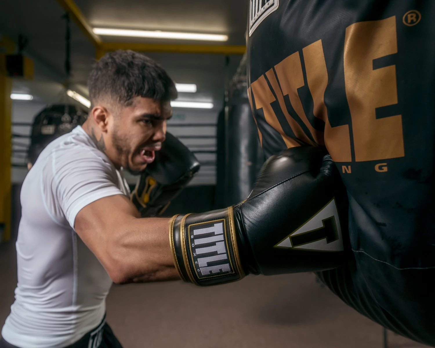 Technologically advanced and improved, the TITLE Boxeo Mexican Leather Bag Gloves Quatro are handcrafted and handstitched in traditional Mexican design with triple nylon stitching, layered protective padding with shock suppressing latex memory foam, genuine leather striking surface and moisture-wicking inside hand liner. Advanced with more equally distributed balance and weighting for a supreme bag glove. Reverse D-ring with wraparound wrist strap and hook-and-loop closure assures a custom form fit with no-slip security during intense training. An inspired Mexican style heavy bag glove is now more advanced and at an even more incredible price!