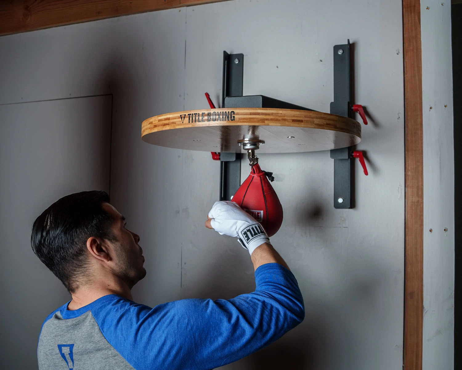 A professional, fully adjustable industrial forged steel frame for an incredibly solid and sturdy speed bag platform. A super thick hardwood wooden drum assures true responses, rapid rebounds and super speed . . . every time. Easily adjusts vertically up to 20” with four security pop-pins for every size user, from youth to super heavy weight. Designed to mount in 16″ on-center wood wall studs for home use, or masonry walls for gym use. An easy to assemble speed bag platform that delivers professional gym results and lightning quick action from the thick, hardwood pro style drum. Swivel is included. Masonry wall attachment hardware included. Speed Bag not included.