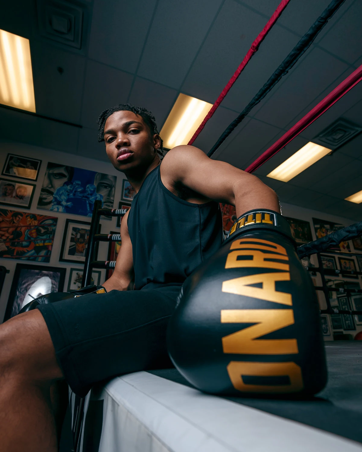 Inspired by the classic rematch that took place on November 25, 1980, when Ray Leonard regained his welterweight title against Roberto “Hands of Stone” Duran. This classy and clean gold-on-black look was also worn against future opponents, like Bruce Finch, Larry Bonds and Donny Lalonde.