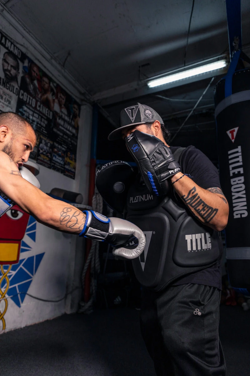Discover the Platinum Advantage and you’ll instantly be a fan for life! All new and exclusive Platinum protection layered foams and protruded convex molded target foams make for the most comfortable, protective, lightweight, form fitting training protector available. Nearly 3″ of conforming and impact absorbent sponge foams, with layered medium and high density impact resistant outer foams to create a training protector that can absorb punches, strikes and kicks with little to almost no feel to the trainer. The protruded target zones extend athletes training the ideal resistance and impact upon contact. Ideal for trainers to wear in combination with punch mitts for a complete full body training experience. Complete with moisture wicking inside liner, completely adjustable shoulder and back elastic straps, reinforced D-ring, padded back pad and more. Train with the Platinum Advantage and you’ll never go back to your regular equipment again!